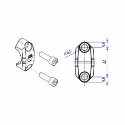 Cavallotto per pompa freno e frizione radiale Brembo OEM e RCS senza foro montaggio specchio, realizzato dal pieno in lega leggera tramite macchine CNC e successiva anodizzazione superficiale. Il kit comprende un cavallotto e due viti in acciaio zincate nere. Kit viteria in titanio opzionale disponibile codice KV428X