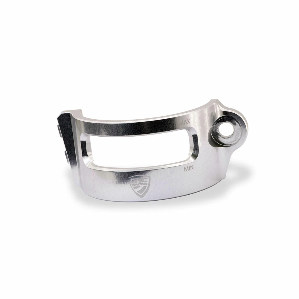 Semibraccialetto serbatoio fluido freno posteriore della Ducati Multistrada V4, realizzato dal pieno in lega leggera con successivo trattamento di anodizzazione superficiale. Sostituisce l’originale in plastica senza alcuna modifica.