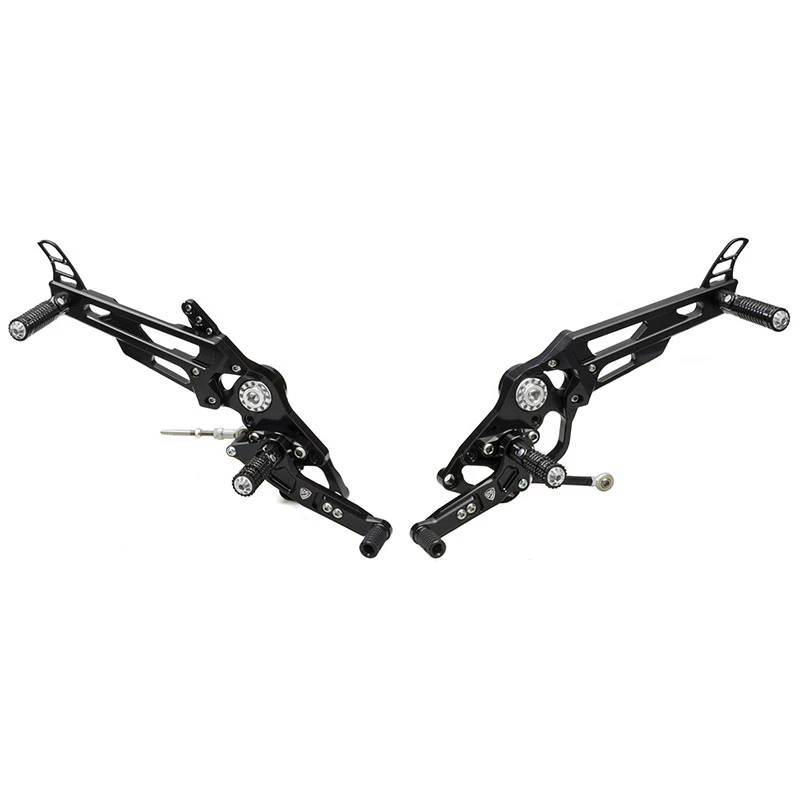Realizzate interamente in Alluminio AL 7075 T6, lavorato dal pieno mediante l’utilizzo di macchine a controllo numerico e successivo trattamento di anodizzazione superficiale. CARATTERISTICHE TECNICHE – Poggiapiede godronato, reclinabile e bloccabile mediante spina elastica in acciaio – Nr. 3 posizionamenti per poggiapiede – Leve freno e cambio infulcrate su doppio cuscinetto a sfera – Regolazioni “cursore leva freno e cambio” su guida di scorrimento (range di 35 mm. rispetto la configurazione stock – -20 +15 mm) – Attacco per sensore luce stop – Supporto per serbatoio olio e pompa freno posteriore – Viteria in acciaio Aisi 304