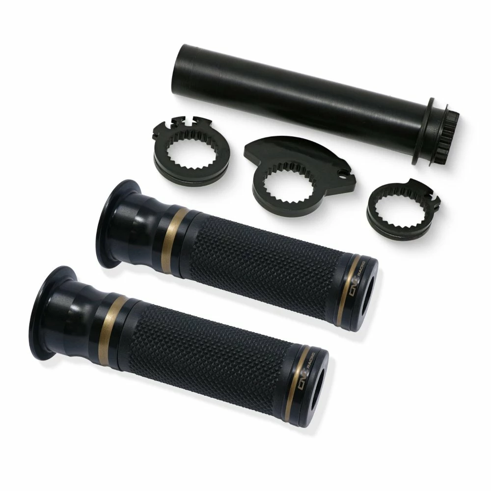 La combinazione tra alluminio e materiali innovativi hanno reso possibile la creazione delle manopole “EVO”, prodotto accattivante e sicuro. Lavorate dal pieno in lega leggera con successivo trattamento di anodizzazione superficiale che offre la disponibilità di varie colorazioni. Inserti in gomma speciale permettono un maggior grip e affidabilità nella guida. Grazie alle tre diverse ghiere in dotazione le manopole possono essere considerate universali. Note tecniche: la lunghezza della manopola è di 120 mm. Possono esserci problemi di montaggio su modelli con manopole riscaldate. Per diversi modelli di moto dotate di Ride By Wire, per un corretto montaggio è disponibile il tubo comando: Ducati MPA01B. MV Agusta MPA02B oppure MPA03B. Verificare la lista modelli compatibili prima di procede con l’ordine del prodotto.