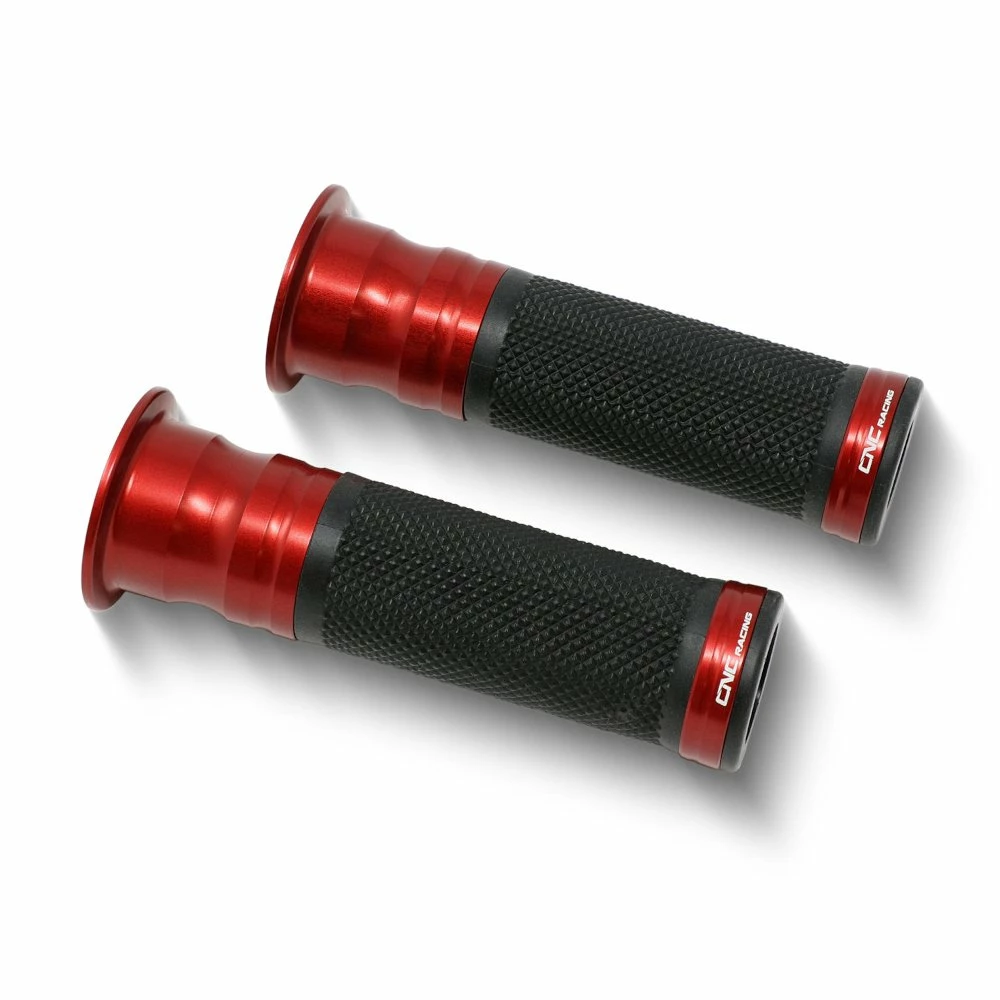 La combinazione tra alluminio e materiali innovativi hanno reso possibile la creazione delle manopole “EVO”, prodotto accattivante e sicuro. Lavorate dal pieno in lega leggera con successivo trattamento di anodizzazione superficiale che offre la disponibilità di varie colorazioni. Inserti in gomma speciale permettono un maggior grip e affidabilità nella guida. Grazie alle tre diverse ghiere in dotazione le manopole possono essere considerate universali. Note tecniche: la lunghezza della manopola è di 120 mm. Possono esserci problemi di montaggio su modelli con manopole riscaldate. Per diversi modelli di moto dotate di Ride By Wire, per un corretto montaggio è disponibile il tubo comando: Ducati MPA01B. MV Agusta MPA02B oppure MPA03B. Verificare la lista modelli compatibili prima di procede con l’ordine del prodotto.