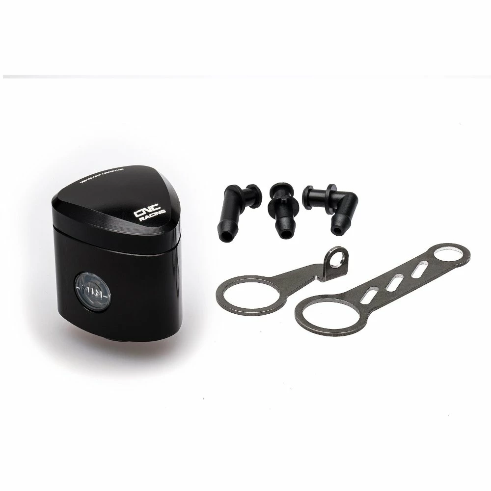 Serbatoi olio freno/frizione lavorati dal pieno tramite macchine cnc con successiva anodizzazione superficiale che, oltre a conferire un ampia gamma di colori, garantisce qualità e durata nel tempo. Il kit comprende tre uscite (inclinazione verticale, a 45° e 90°), due staffe metalliche e guarnizioni complete. Per freno posteriore/frizione, capacità 12 ml.