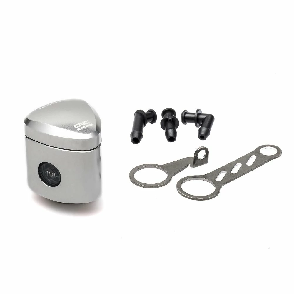 Serbatoi olio freno/frizione lavorati dal pieno tramite macchine cnc con successiva anodizzazione superficiale che, oltre a conferire un ampia gamma di colori, garantisce qualità e durata nel tempo. Il kit comprende tre uscite (inclinazione verticale, a 45° e 90°), due staffe metalliche e guarnizioni complete. Per freno posteriore/frizione, capacità 12 ml.