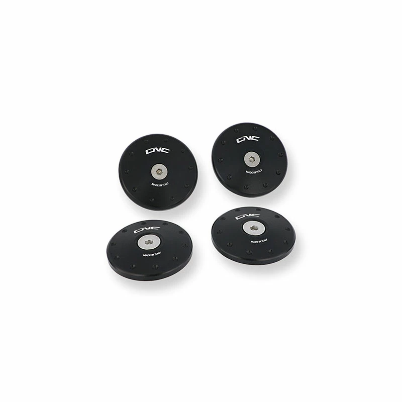 Tappi telaio realizzati dal pieno in lega leggera con successiva anodizzazione superficiale.