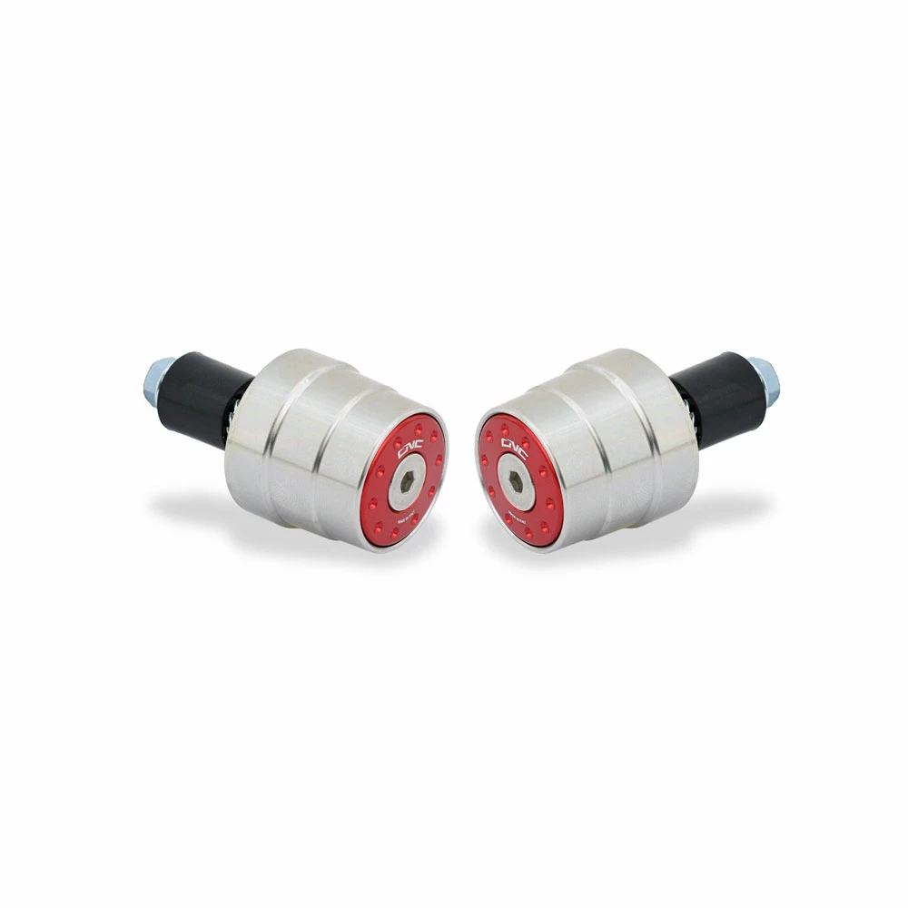 Cnc Racing contrappesi manubrio realizzati dal pieno in Acciaio Inox tramite macchine CNC. I tappi esterni realizzati in alluminio con successiva anodizzazione colorata donano un estetica accattivante.