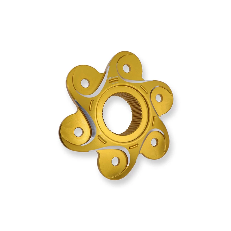 Flangia portacorona per Ducati con perno ruota posteriore a 6 fori lavorata dal pieno in lega leggera con successiva anodizzazione superficiale.